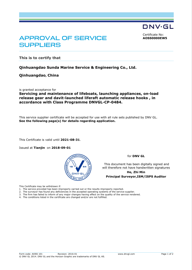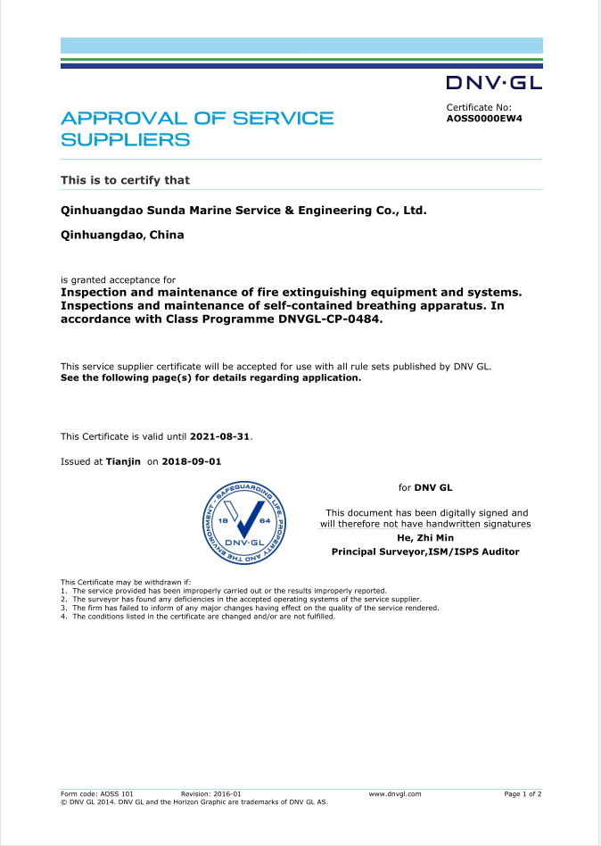 秦皇島順達(dá)船務(wù)有限公司位于美麗的海濱城市、中國北方著名的能源輸出大港--秦皇島。公司從事于船舶修理、物料供應(yīng)、水下檢測、船體測厚、消防救生設(shè)備及救生艇檢驗、電氣自動化修理等服務(wù)。 公司自1997年成立至今,先后為國內(nèi)外船東修理、檢驗各類船舶萬余艘,積累了豐富的施工經(jīng)驗。公司現(xiàn)有場地100余畝,員工30余人,以及工程用車若干臺。我們公司一直本著嚴(yán)以律己、真誠待人、精益求精、信譽至上的經(jīng)營理念,以優(yōu)質(zhì)的服務(wù)、專業(yè)的施工、合理的收費,得到了國內(nèi)外船東的廣泛認(rèn)可,贏得了良好的口碑和信譽。 公司已取得了中國船級社(CCS)、美國船級社(ABS)、日本船級社(NK)、德國船級社(DNV GL)等各個船級社的消防救生和救生艇檢驗資質(zhì), ...
